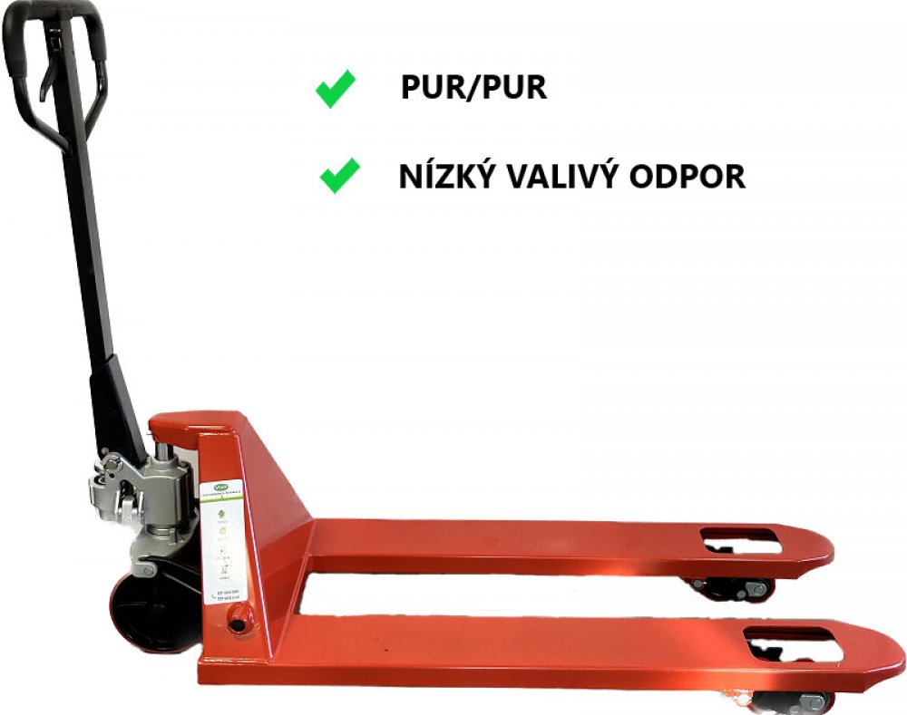 Paletový vozík pro vyšší zatížení s nosností 2500 kg, výškou zdvihu 200 mm, vybavený zdvojeným provedení nosných kol s kvalitními ložisky, pomocnými nájezdovými koly na konci vidlic pro snažší najíždění do palet a redukčním ventilem proti přetížení. Vozík má pevnou konstrukci a rám. Díky polyuretanovým kolům má nízký valivý odpor.