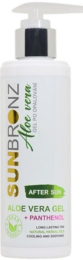 Po dokonalém bronzovém opálení touží snad každý, ale někdy to na sluníčku přeženeme. Gel po opalování SUN BRONZ s Aloe vera úžasně zklidňuje a regeneruje sluníčkem namáhanou pokožku. Chladivý gel s extraktem z aloe vera a panthenolem poskytuje podrážděné pokožce okamžitou úlevu.