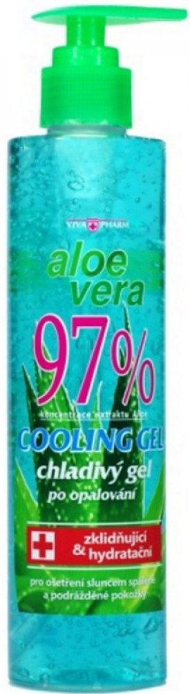 Chladivý gel s aloe vera obsahuje velmi vysokou koncentraci extraktu Aloe vera. Aloe gel působí blahodárně na podrážděnou a zarudlou pokožku vlivem nadměrného slunění nebo spálenou pokožku. Příjemně chladí, osvěžuje a zklidňuje. Přispívá k hydrataci a regeneraci suché a citlivé pokožky.