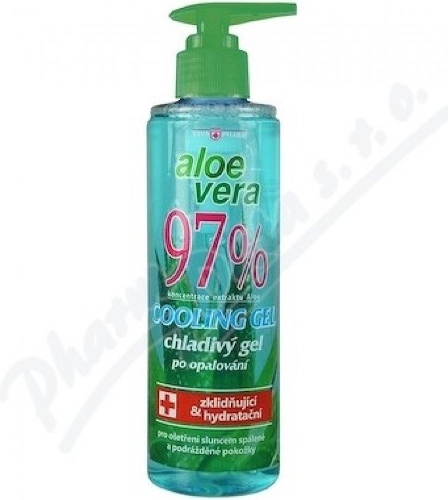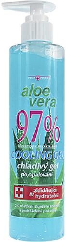 Chladivý gel s Aloe vera obsahuje velmi vysokou koncentraci extraktu Aloe vera. Aloe gel působí blahodárně na podrážděnou, vysušenou a zarudlou pokožku. Příjemně chladí, osvěžuje a zklidňuje. Přispívá k hydrataci a regeneraci suché a citlivé pokožky. Snadno se vstřebává a je vhodný pro každodenní použití pro všechny věkové kategorie včetně dětí.