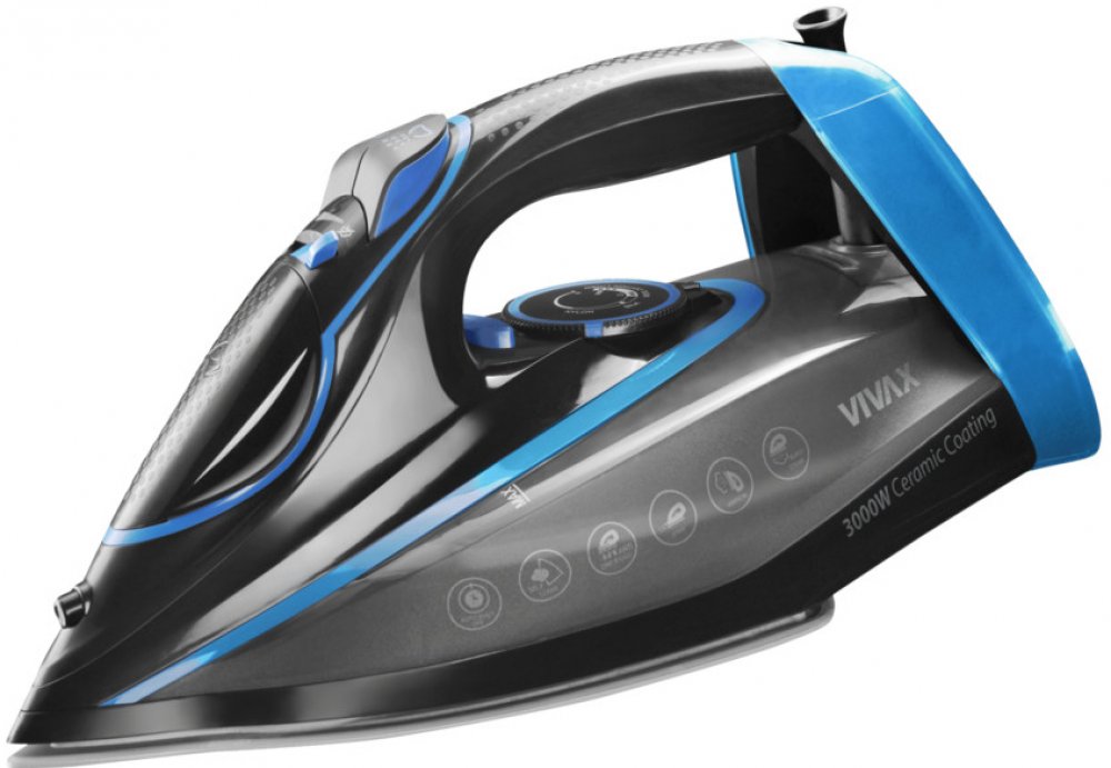 Žehlička VIVAX IR-3000ASC s vysokým výkonem 3000W a nastavitelným termostatem odstraňuje záhyby z oblečení během okamžiku.