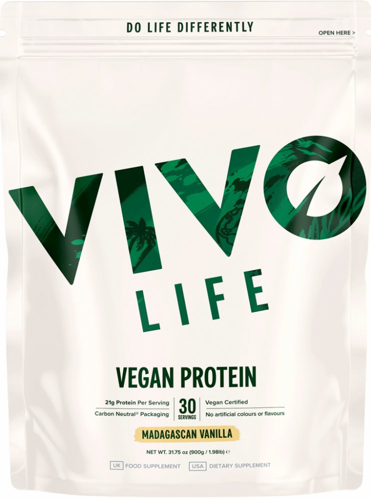 Vivo Life 900 g veganské práškové 20.0 g 30.0 g 30 ks 115.0 kcal konjac, stevie, himalájská sůl, vanilka fermentovaný hrách, konopný protein, dýňový protein 12.0 g/100 ml