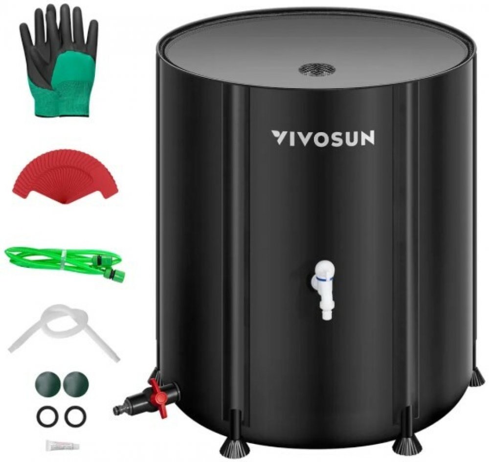 VIVOSUN skládací sud-flexi tank na vodu/zálivku o objemu 200 litrů je robustní a přenosný zásobník navržený pro efektivní zachytávání a skladování dešťové vody u domu, chaty i na zahradě. Plášť z vysoce odolné 1000D Oxford tkaniny s PVC povlakem je oděruvzdorný a vodotěsný, vnitřní vložka je zpevněná a podporovaná sadou PVC výztuh, které drží tvar nádrže i při maximálním naplnění. Horní víko s jem...