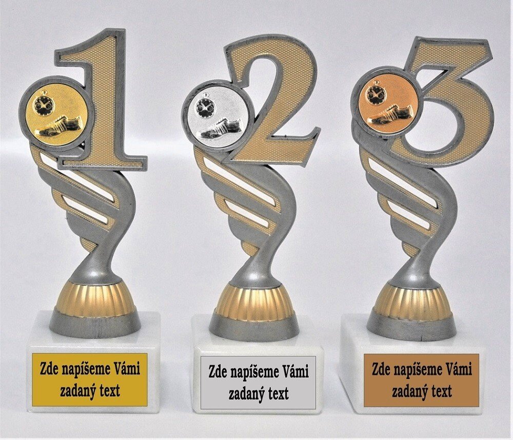 P401-3.22-830-A66. Velikost trofejí s pořadím je 16 cm. Objednáváte celou sadu 1.-3. místo, text na štítek napište do rubriky "štítek na" a do košíku zadejte 3. Pokud objednáváte ve větším počtu a pro různé kategorie, zpracujte texty ve Vašem PC a přiložte jako samostatný soubor k tomu určený před uzavřením objednávky a zde vyplňte pouze součet štítků - pro správnou kalkulaci/fakturaci/. -