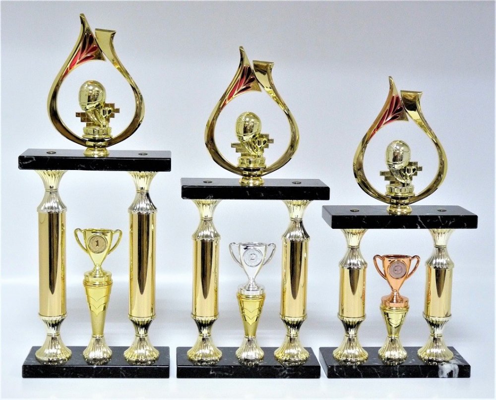 62-P026. Sloupkové trofeje s pořadím - viz.další foto. Velikost trofejí je uvedena za lomítkem katalogového čísla. Objednáváte celou sadu trofejí (kat.č.62-P../53/49/45cm), text na štítek napište jen do rubriky "štítek na" a do košíku zadejte 3. Ukázka možného zpracování štítků viz.další foto. Pokud objednáváte ve větším počtu a pro různé kategorie, zpracujte texty ve Vašem PC a přiložte jako samostatný soubor k tomu určený před uzavřením objednávky (2 krok pokladna) a zde vyplňte pouze součet štítků - pro správnou kalkulaci/fakturaci/. -