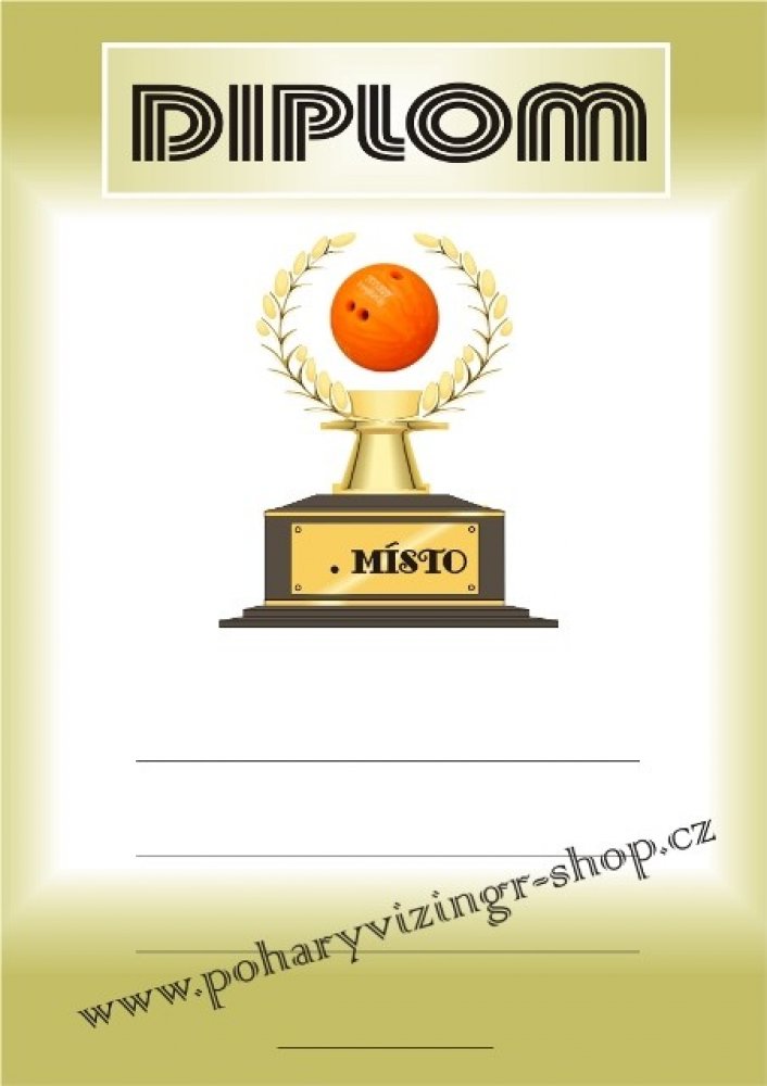 Bowl.č.13. Diplom formátu A4 (250 g). Objednáváte NEVYPLNĚNÉ (BEZ TEXTU) diplomy a chcete si je vyplňovat vlastní tiskárnou - napište do textu "BEZ LINEK". Objednáváte diplomy VYPLNĚNÉ - krátké a stejné texty napište zde. Požadujete-li dlouhé nebo různorodé texty napište je prosím ve svém PC a vložte soubor (např.PDF,Corel,WORD,Exel apod.) před uzavřením objednávky jako přílohu. Do diplomu lze vložit i Vaše logo, foto apod. - pro realizaci je vhodné konzultovat e-mailem v jakém formátu požadované logo máte k dispozici.Vyplněné diplomy(četná uznání, pamětní listy apod.) Vám i zalaminujeme - vhodné domluvit na prodejně. -