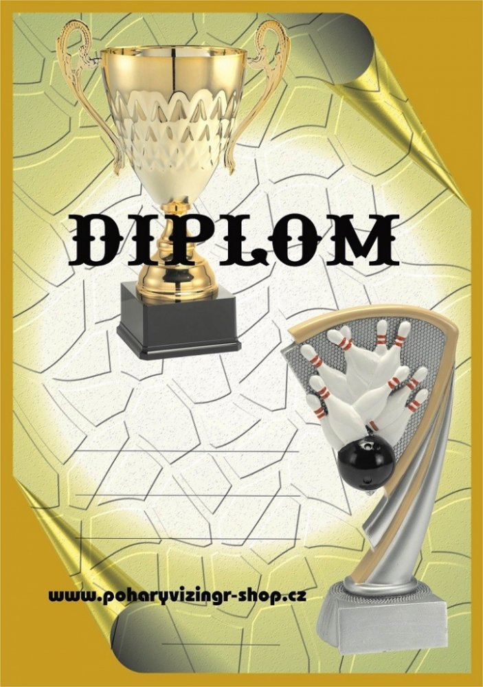 Bowl. č.27. Diplom formátu A4 (250 g). Objednáváte NEVYPLNĚNÉ DIPLOMY (BEZ TEXTU) a chcete si je vyplňovat vlastní tiskárnou - napište do textu "BEZ LINEK". Objednáváte diplomy VYPLNĚNÉ - krátké a stejné texty napište zde. Požadujete-li dlouhé nebo různorodé texty napište je prosím ve svém PC a vložte soubor (např.PDF,Corel,WORD,Exel apod.) před uzavřením objednávky jako přílohu (2 krok pokladna). Do diplomu lze vložit i Vaše logo, foto apod. - pro realizaci je vhodné konzultovat e-mailem v jakém formátu požadované logo máte k dispozici.Vyplněné diplomy(četná uznání, pamětní listy apod.) Vám i zalaminujeme - vhodné domluvit na prodejně. -