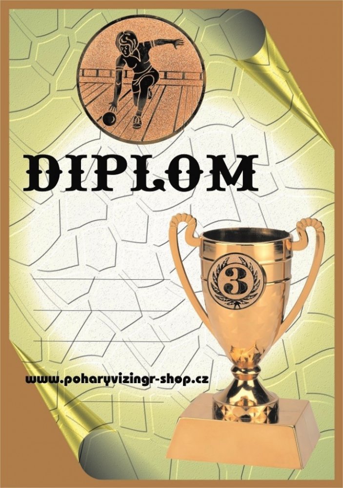 Bowl. č.33. Diplom formátu A4 (250 g). Objednáváte NEVYPLNĚNÉ DIPLOMY (BEZ TEXTU) a chcete si je vyplňovat vlastní tiskárnou - napište do textu "BEZ LINEK". Objednáváte diplomy VYPLNĚNÉ - krátké a stejné texty napište zde. Požadujete-li dlouhé nebo různorodé texty napište je prosím ve svém PC a vložte soubor (např.PDF,Corel,WORD,Exel apod.) před uzavřením objednávky jako přílohu (2 krok pokladna). Do diplomu lze vložit i Vaše logo, foto apod. - pro realizaci je vhodné konzultovat e-mailem v jakém formátu požadované logo máte k dispozici.Vyplněné diplomy(četná uznání, pamětní listy apod.) Vám i zalaminujeme - vhodné domluvit na prodejně. -