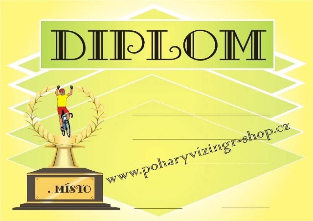 Cykl. č.16. Diplom formátu A4 (250 g). Objednáváte NEVYPLNĚNÉ diplomy a chcete si je vyplňovat vlastní tiskárnou - napište do textu "BEZ LINEK". Objednáváte diplomy VYPLNĚNÉ - krátké a stejné texty napište zde. Požadujete-li dlouhé nebo různorodé texty napište je prosím ve svém PC a vložte soubor (např.PDF,Corel,WORD,Exel apod.) před uzavřením objednávky jako přílohu. Do diplomu lze vložit i Vaše logo, foto apod. - pro realizaci je vhodné konzultovat e-mailem v jakém formátu požadované logo máte k dispozici.Vyplněné diplomy(četná uznání, pamětní listy apod.) Vám i zalaminujeme - vhodné domluvit na prodejně. -