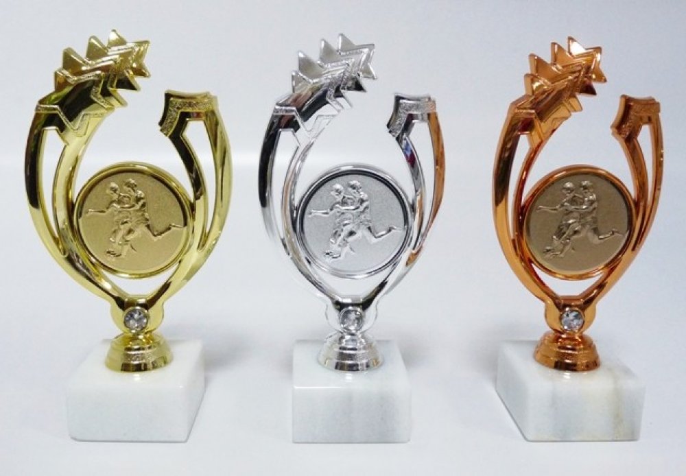 P95-830-A1. Velikost trofejí je 18 cm včetně mramorového podstavce. Při nákupu jedné sady trofejí (zlato,stříbro,bronz) - text na štítek napište jen do rubriky "štítek na" např. KRAJSKÝ POHÁR 1. - 3. místo Znojmo 11.9.2017 a do součtu štítků zadejte 3 !!! Ukázka možného zpracování štítků viz.další foto. Pokud objednáváte ve větším počtu a pro různé kategorie, zpracujte texty ve Vašem PC a přiložte jako samostatný soubor k tomu určený před uzavřením objednávky (2 krok pokladna) a zde vyplňte pouze počty štítků - pro správnou kalkulaci. -
