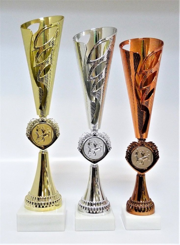 379-A15. Plastové poháry na mramorovém podstavci. Velikost pohárů je uvedena za lomítkem katalogového čísla. Při nákupu celé sady (47cm-zlatý/45cm-stříbrný/42cm-bronzový), text na štítky napište jen do rubriky "štítek na" např. O POHÁR PRIMÁTORA 1.-3.místo Tábor 12.8.2021 a do součtu štítků zadejte 3 !!! Pokud objednáváte ve větším počtu a pro různé kategorie, zpracujte texty ve Vašem PC a přiložt...