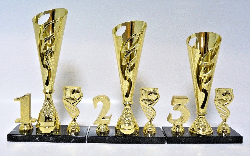 390-P415.01. Poháry s pořadím. Výška pohárů je uvedena za lomítkem katalogového čísla. Velikost mramorového podstavce je 20 x 9 x 2 cm. Při nákupu jedné sady (390-...-1.-2.-3.místo)- text na štítky napište jen do rubriky "štítek na" např. O POHÁR PRIMÁTORA 10.10.2021 Brno a do součtu štítků zadejte 3 !!! Ukázka možného zpracování štítku - viz. další foto. Pokud objednáváte ve větším počtu a pro různé kategorie, zpracujte texty ve Vašem PC a přiložte jako samostatný soubor k tomu určený před uzavřením objednávky(2 krok pokladna) a zde vyplňte pouze počty štítků - pro správnou kalkulaci. -