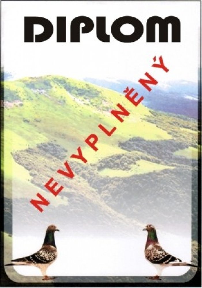 Holub č.2. Diplom formátu A4 (250g). Objednáváte NEVYPLNĚNÉ diplomy a chcete si je vyplňovat vlastní tiskárnou - napište do textu "BEZ LINEK". Objednáváte diplomy VYPLNĚNÉ - krátké a stejné texty napište zde. Požadujete-li dlouhé nebo různorodé texty napište je prosím ve svém PC a vložte soubor (např.PDF,Corel,WORD,Exel apod.) před uzavřením objednávky jako přílohu. Do diplomu lze vložit i Vaše lo...