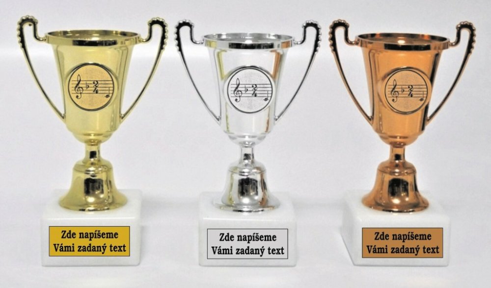374-47. Velikost plastových pohárů včetně mramorového podstavce je 14 cm. Při nákupu celé sady (zlato,stříbro,bronz), text na štítky napište jen do rubriky "štítek na" a do součtu štítků zadejte 3 !!! Pokud objednáváte ve větším počtu a pro různé kategorie, vyplňte zde jen součet štítků pro správnou kalkulaci a texty zpracujte ve Vašem PC a soubor přiložte jako samostatnou přílohu (2 krok pokladna...