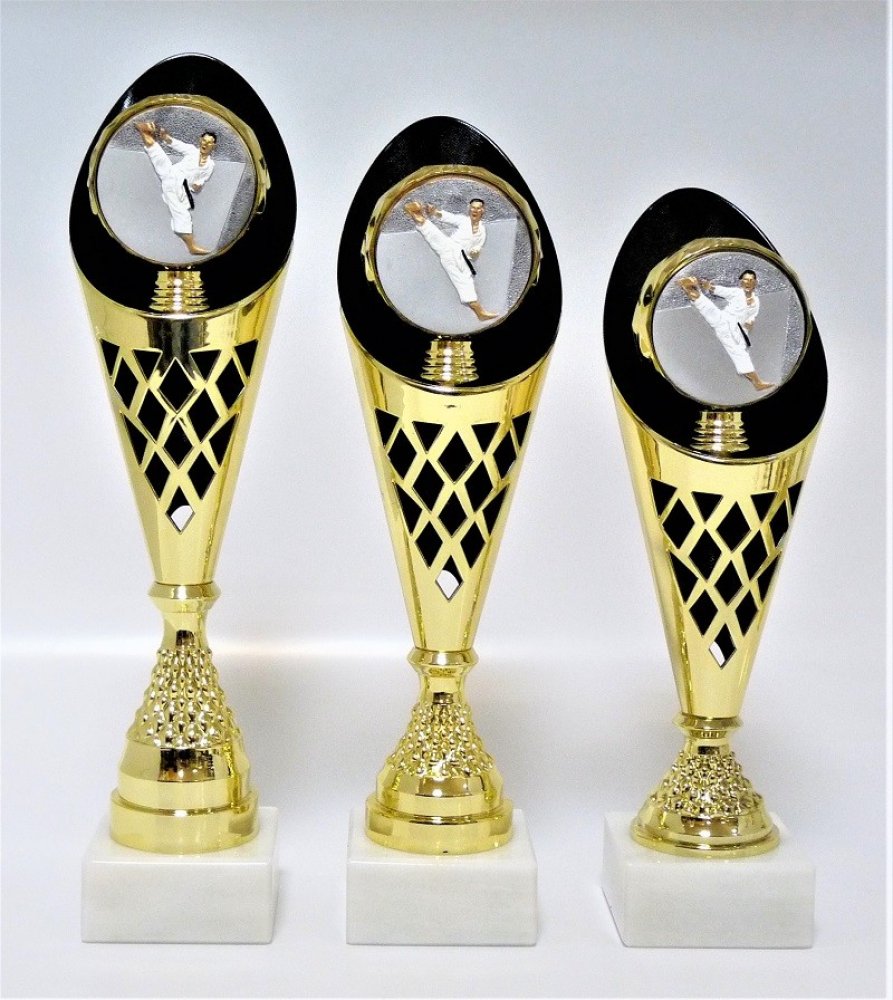 K14-FG005. Plastové poháry na mramorovém podstavci. Velikost pohárů je uvedena za lomítkem katalogového čísla. Do pohárů jsou vloženy keramické emblémy o průměru 7 cm. Při nákupu celé sady (40/37/34cm), text na štítky napište jen do rubriky "štítek na" např. O POHÁR PRIMÁTORA 1. - 3. místo Tábor 12. 8. 2022 a do součtu štítků zadejte 3 !!! Pokud objednáváte ve větším počtu a pro různé kategorie, zpracujte texty ve Vašem PC a přiložte jako samostatný soubor k tomu určený před uzavřením objednávky(2 krok pokladna) a zde vyplňte pouze počty štítků - pro správnou kalkulaci. Ukázka možného zpracování štítků viz.další foto. -