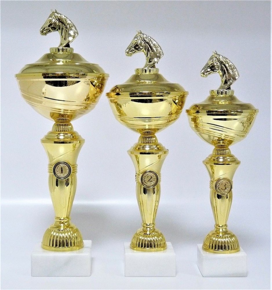 X23-P007. Poháry s pořadím viz. další foto. Výška pohárů včetně figurky je uvedena za lomítkem katalogového čísla. Průměr kalichů je 16, 14, 12 cm. Při nákupu jedné sady (X23../44/41/37cm)- text na štítky napište jen do rubriky "štítek na" např. O POHÁR PRIMÁTORA 10.7.2018 Plzeň a do součtu štítků zadejte 3 !!! Ukázka možného zpracování štítku - viz.další foto. Pokud objednáváte poháry ve větším počtu a pro různé kategorie, zpracujte texty ve Vašem PC a přiložte jako samostatný soubor k tomu určený před uzavřením objednávky(2 krok pokladna) a zde vyplňte pouze počty štítků - pro správnou kalkulaci. -