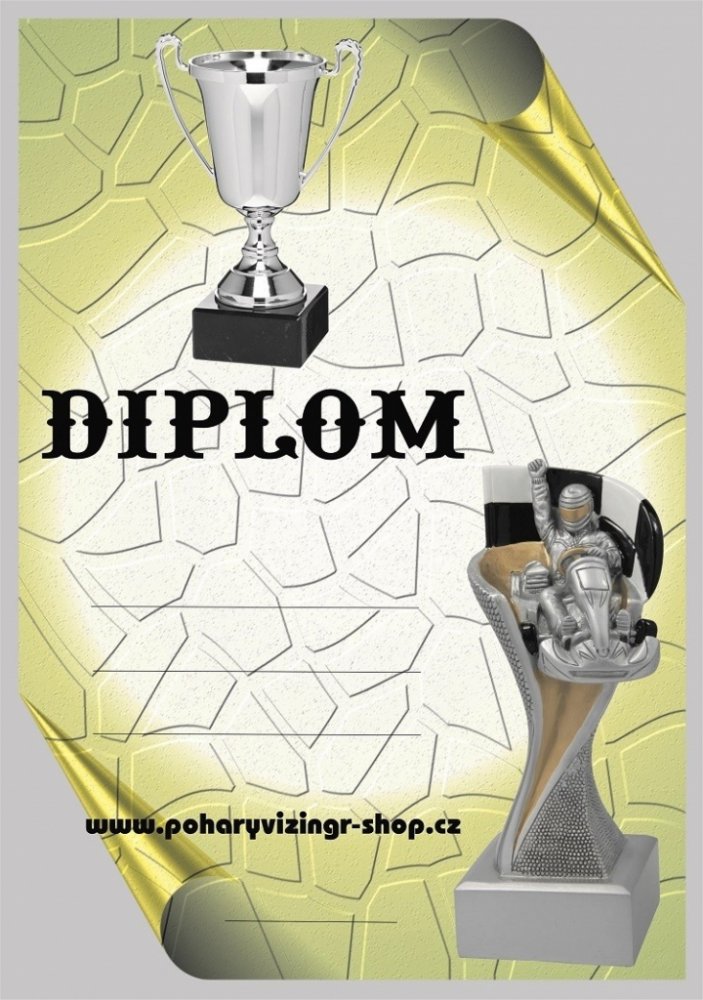 Káry č.5. Diplom formátu A4 (250g). Objednáváte NEVYPLNĚNÉ diplomy a chcete si je vyplňovat vlastní tiskárnou - napište do textu "BEZ LINEK". Objednáváte diplomy VYPLNĚNÉ - krátké a stejné texty napište zde. Požadujete-li dlouhé nebo různorodé texty napište je prosím ve svém PC a vložte soubor (např.PDF,Corel,WORD,Exel apod.) před uzavřením objednávky jako přílohu. Do diplomu lze vložit i Vaše log...