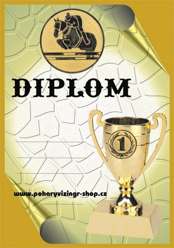 Koně č.23. Diplom formátu A4 (250 g). Objednáváte NEVYPLNĚNÉ DIPLOMY (BEZ TEXTU) a chcete si je vyplňovat vlastní tiskárnou - napište do textu "BEZ LINEK". Objednáváte diplomy VYPLNĚNÉ - krátké a stejné texty napište zde. Požadujete-li dlouhé nebo různorodé texty napište je prosím ve svém PC a vložte soubor (např.PDF,Corel,WORD,Exel apod.) před uzavřením objednávky jako přílohu (2 krok pokladna). Do diplomu lze vložit i Vaše logo, foto apod. - pro realizaci je vhodné konzultovat e-mailem v jakém formátu požadované logo máte k dispozici.Vyplněné diplomy(četná uznání, pamětní listy apod.) Vám i zalaminujeme - vhodné domluvit na prodejně. -