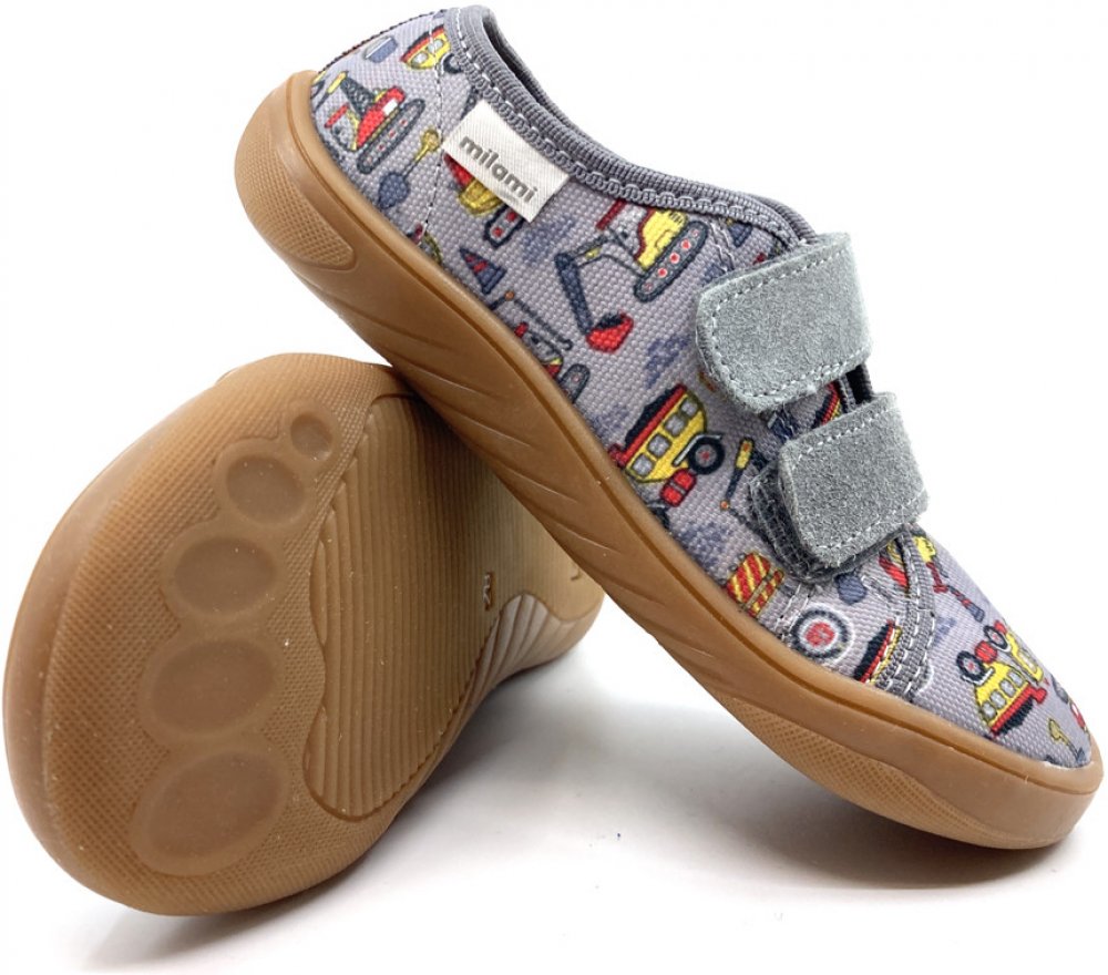 Chlapecké barefoot textilní tenisky BF3 VJ47 Grey v šedé barvě jsou novinkou srbského výrobce Milami. S oblíbeným motivem stavebních strojů, bagrů a náklaďáků.