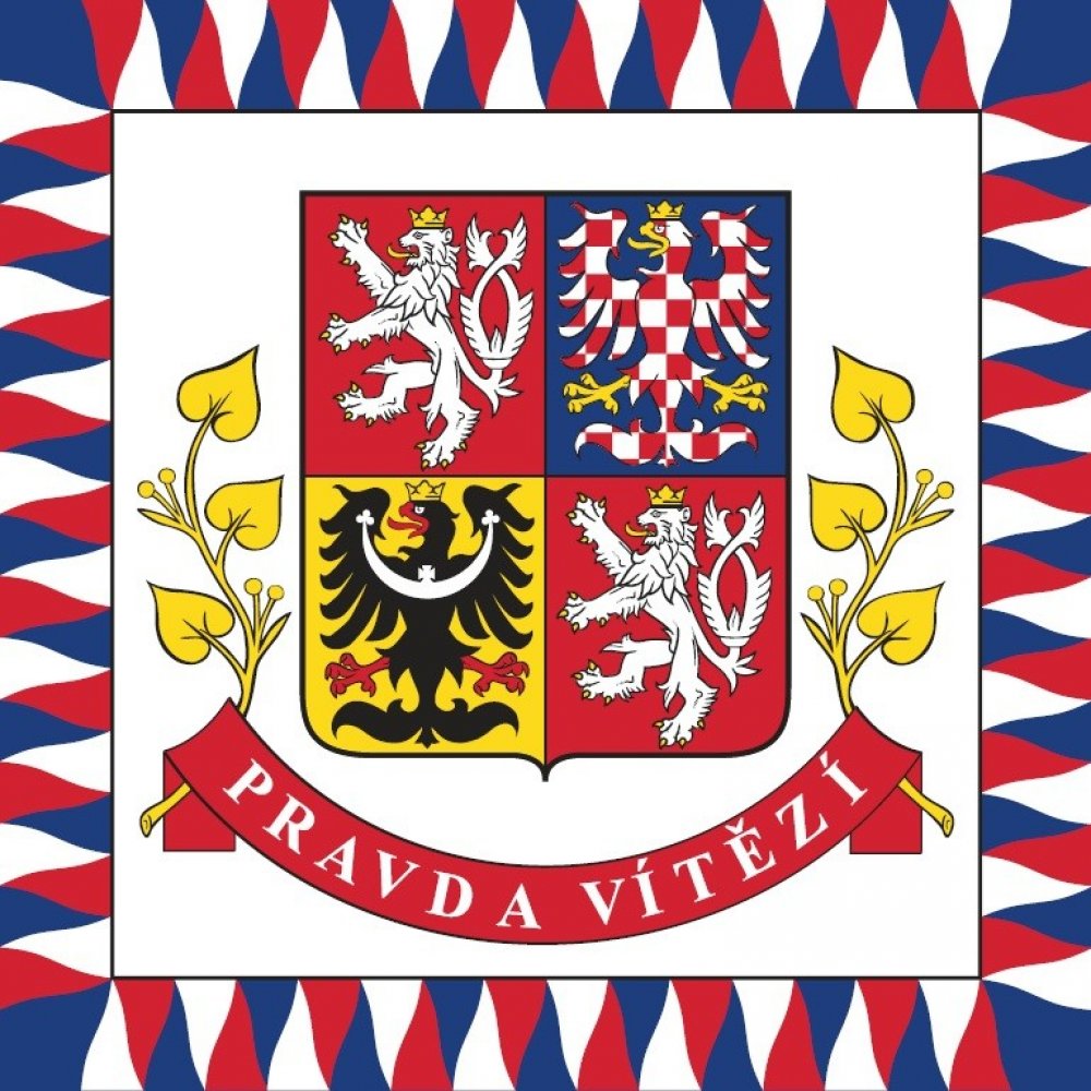 Vlajka prezidenta České republikyPodobu vlajky prezidenta České republiky, která je často nepřesně nazývaná „prezidentskou standartou“, stanoví její vexilologický popis v prvním odstavci § 5 zákona č. 3/1993 Sb., o státních symbolech České republiky: Vlajka prezidenta republiky je bílá, s okrajem skládajícím se z plaménků střídavě bílých, červených a modrých. Uprostřed bílého pole je velký státní znak. Pod ním je bílý (stříbrný) nápis PRAVDA VÍTĚZÍ na červené stuze podložené žlutými (zlatými) lipovými ratolestmi. Zákonnou podobu plně respektuje i zde prezentovaná tištěná vlajka.Uchycení vlajky:karabinkytunýlekRozměr vlajky: 100x100cm Autorem daného provedení, včetně originální archivované kresby, byl světově uznávaný český heraldik Jiří Louda (1920-2015). Veřejné používání prezidentské vlajky je pochopitelně vyhrazeno pouze osobě prezidenta republiky. Ovšem vlastnictví vyhotovené vlajky je samozřejmě možné pro soukromé, sběratelské a jiné interní zájmové účely. Zákon č. 352/2001 Sb., o užívání státních symbolů České republiky pak v § 10 zcela jasně říká, že: Vlajku prezidenta republiky lze užít k označení a) sídla prezidenta republiky v době jeho přítomnosti v České republice, b) dopravního prostředku používaného prezidentem republiky. Současná vlajka prezidenta České republiky vychází z podoby první prezidentské vlajky z roku 1920. Její obsah se pochopitelně v průběhu 20. století, plného politických zvratů, částečně měnil, ale základní kompoziční podstata zůstala zachována. Vždy se jednalo o bílý čtvercový vlajkový list s lemem tvořeným státními barvami bílo-červeno-modré trikolóry, vycházející z tinktur heraldických znaků Čech a Moravy. Aktuálně platný velký státní znak České republiky vidíme uprostřed prezidentské vlajky. Červená stuha s bílým heslem „Pravda vítězí“ je provedena ve dvou prvních, nejstarších státních barvách - bílé a červené. Samotné heslo „Pravda vítězí“ vychází z (biblického křesťanského) husitského motta „Pravda Páně vítězí“ - Veritas Dei Vincit. Červená stuha s heslem je podložená žlutými (zlatými) lipovými ratolestmi, které představují náš národní symbol.