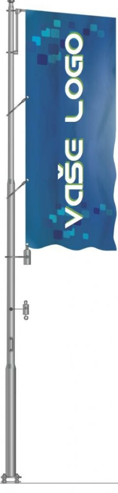 Vlajkový hliníkový segmentový stožár s vnitřním vedením lanka, zámkem na imbus a otočným spouštěcím a vytahovacím ramenem - vlajkové vedení je uloženo uvnitř stožáru, kde je zachyceno v navíjecím mechanismu - chráněno proti krádeži. Stožár je opatřen otočným ramenem, které je jednoduše pomocí lana ovladatelné. Vlajka je tažena dolu pomocí závaží a kolem stožáru je uchycena POE úchyty. Dodávka obsa...