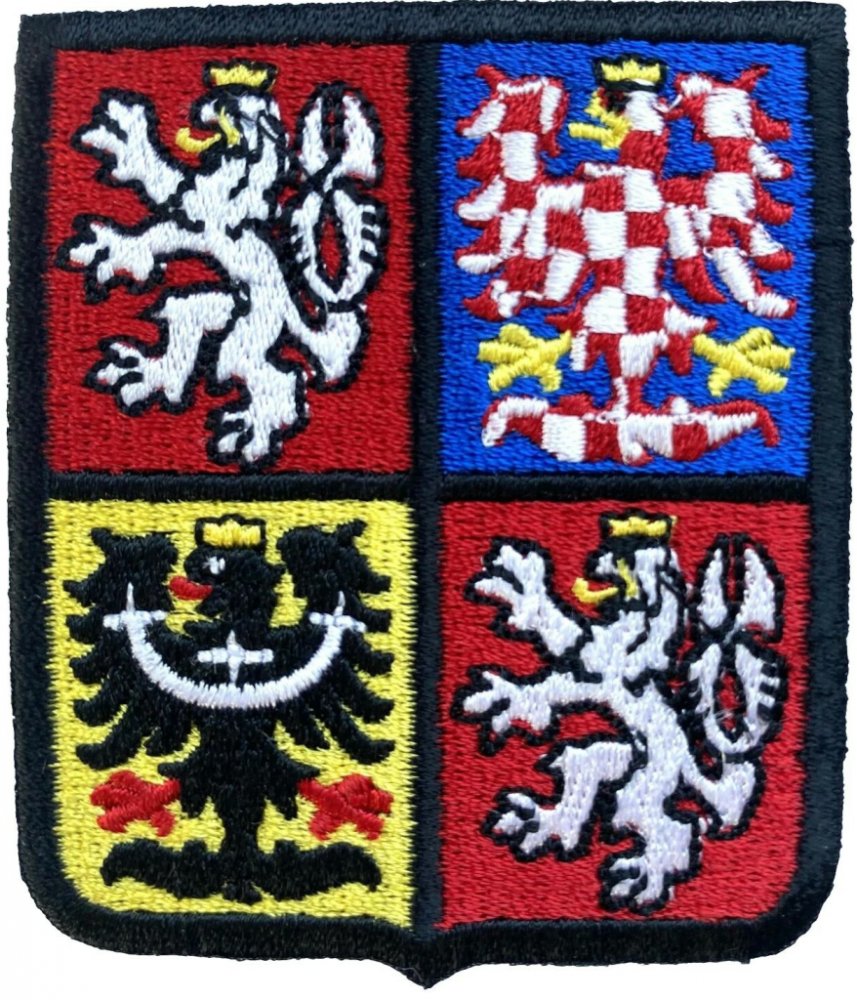 Nášivka vyšívaná - státní znak se silným obšitím po bovodu pro snadnější uchycení nášivky k oděvu. Používá se nejčastěji k našití na rukáv nebo přední stranu oděvu.