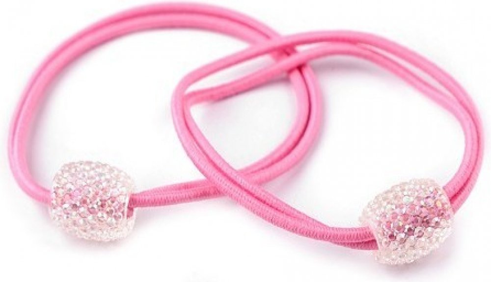 Vlasové doplňky Gumička do vlasů s korálkem s broušenými kamínky růžová 2 ks