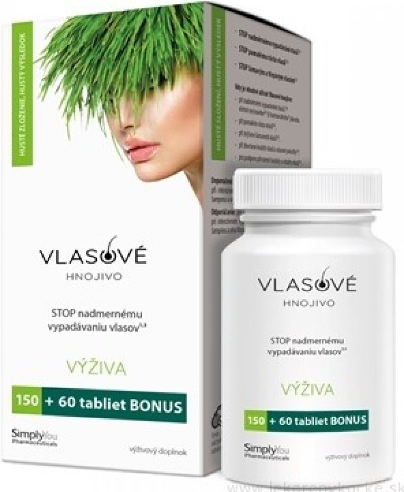 Simply You Pharmaceuticals 210 tbl tablety vlasy, nehty, pleť unisex 127.0 g Vlasové hnojivo pro dospělé perorální od 3 let bez příchuti Česká republika vitamín B7 (biotin) vlasy, kůže a nehty s okamžitým účinkem 105 Kdykoliv 1 tableta 2× denně Suché místo + pokojová teplota, Chránit před světlem/sluncem, Mimo dos
