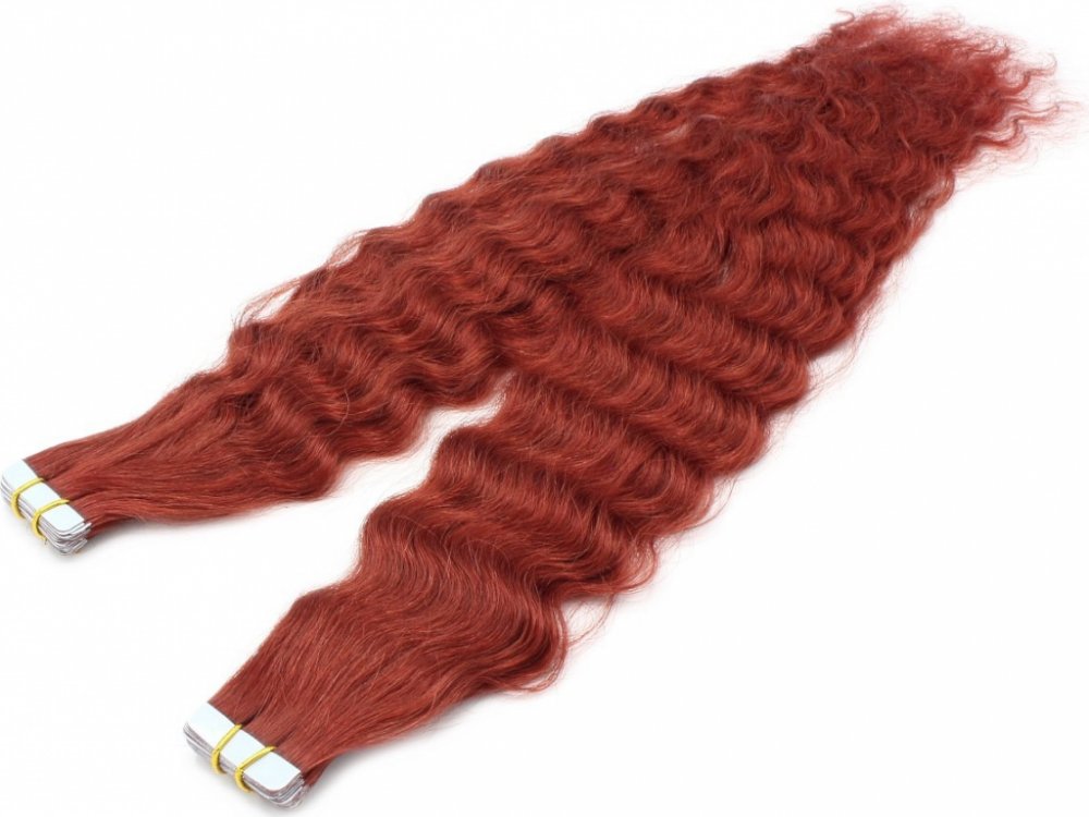 Vlasové pásky Tape in 60cm, 38 pramenů, kudrnaté - měděná