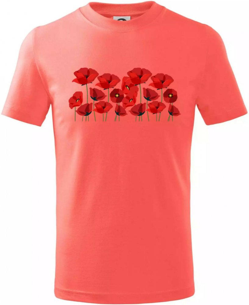 Vlčí mák v řadě tričko dětské bavlněné Korálová
