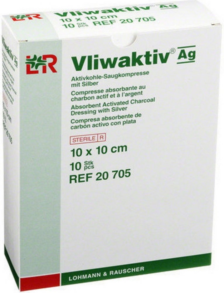 Absorpční komprese s aktivním uhlím a stříbrem. Pro kriticky kolonizované nebo infikované, silně zapáchající rány a pro rány se zvýšeným rizikem infekce. Pro středně až silně exsudující povrchové rány. Komprese působí antibakteriálně v obvazu díky podílu stříbra, váže endotoxiny, přidaná vrstva netkané textilie pro ochranu prádla na kompresi brání prosakování exsudátu z rány.