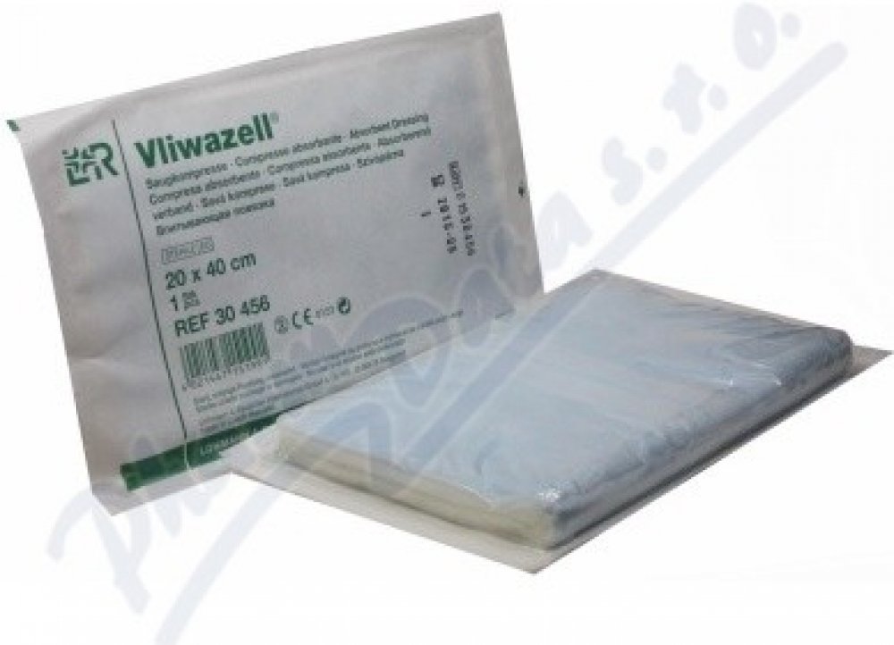 Vliwazell: kompresy 20×40cm, ST/30×1 ks: Po celém obvodu uzavřená vícevrstvá kompresa s velmi vysokou savostí, k ošetření silně exsudujících ran. Díky zvláště měkkému potahu z netkané textilie jsou absorpční kompresy Vliwazell zvláště nedráždící pokožku a šetrné k ráně. Exsudát z rány je rychle odváděn do savého tělesa z celulózových vloček, jehož absorpční kapacita je mnohonásobně vyšší než kapac...