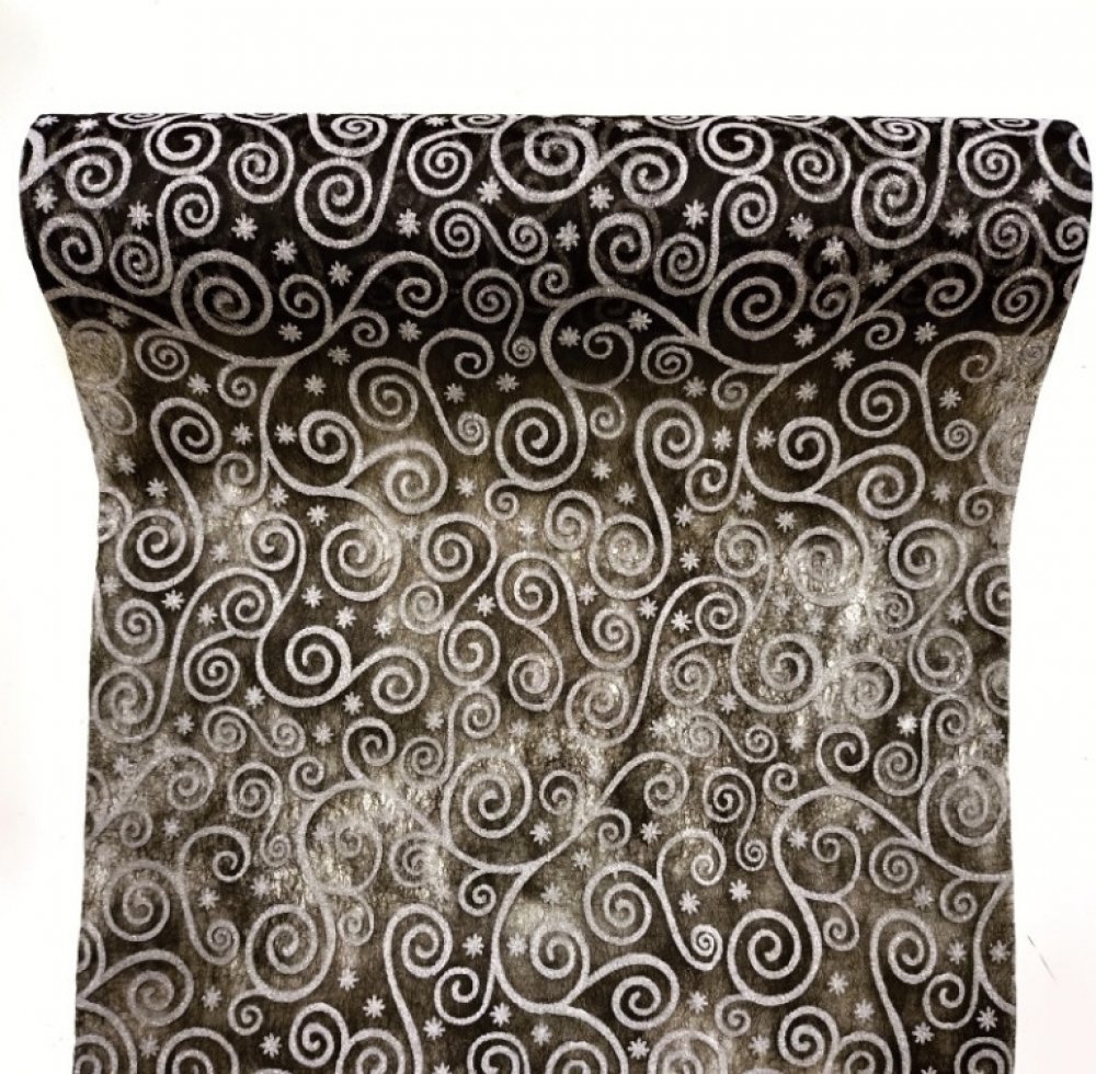 Vlizelín lux třpytivý černý s ornamenty - 30 cm/10 m