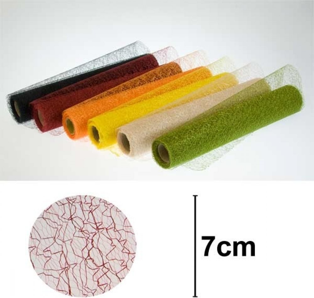 Vlizelin s mnohem řidší strukturou o šířce 39 cm a návinu 9 m. Jedná se o netkanou textilii, která vzniká slepením jemných vlizelinových vláken. Fybrou lze efektně dozdobit organzové nebo papírové dekorace. Velice dobře drží tvar.Nabízíme ve více barvách.