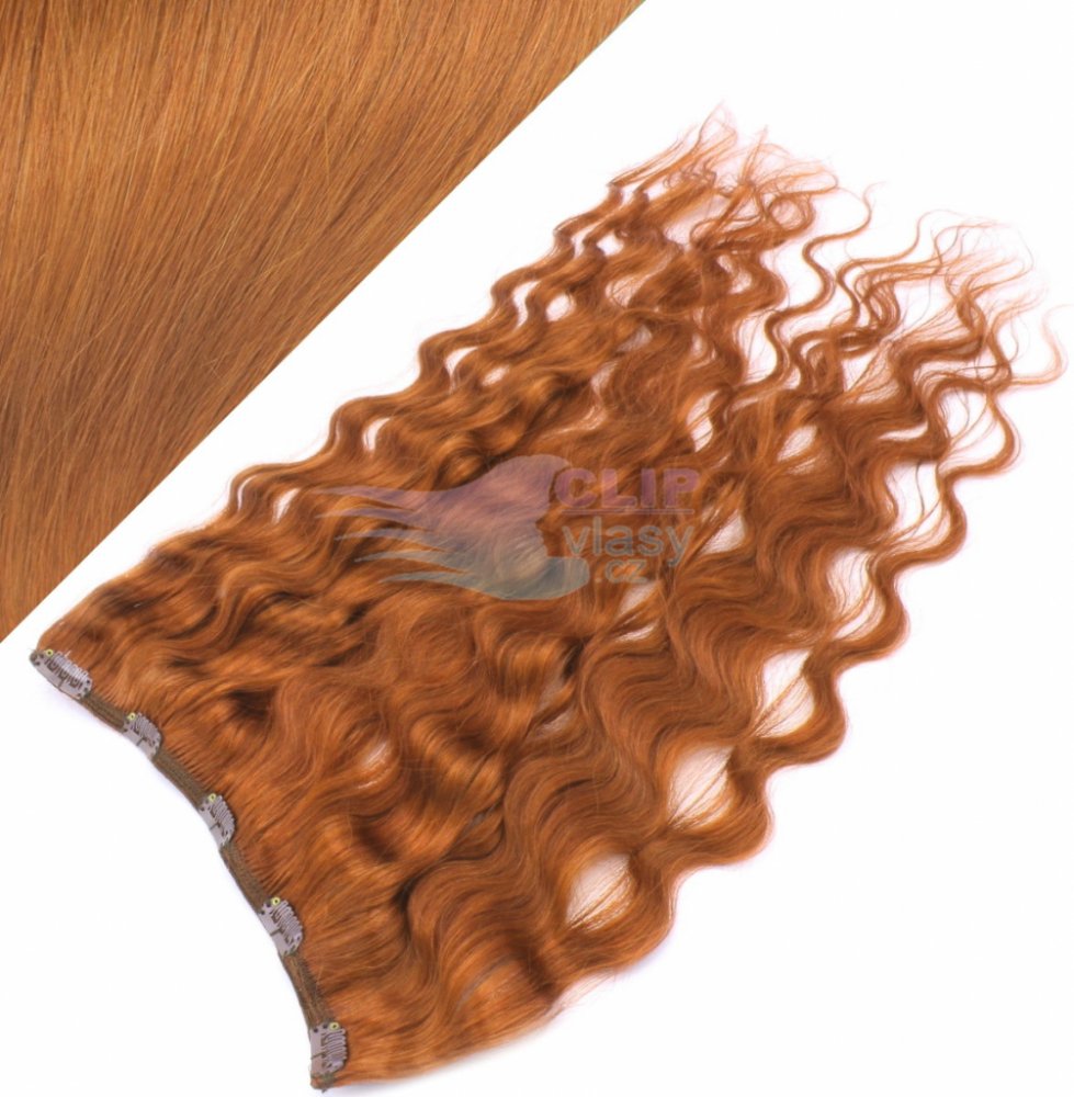 Vlnitý clip in pás 60cm 100% lidské vlasy - měděná #350