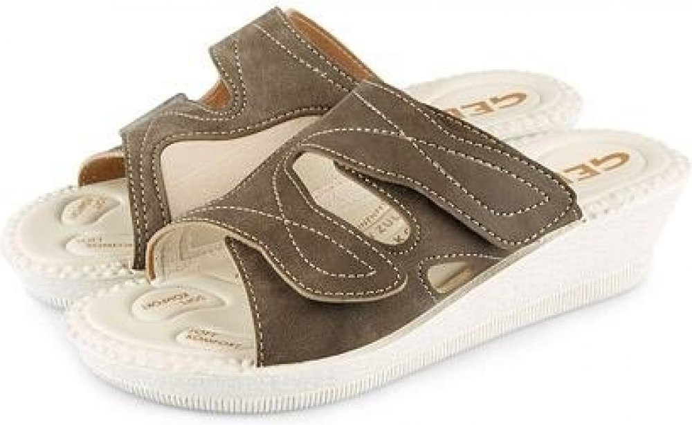 Hledáte pohodlnou letní obuv, která je především dostatečně široká pro vbočený palec? Nazouváky Milada mají kromě pružného materiálu na boku pro hallux navíc také měkkou gelovou stélku, která tlumí každý došlap chodidla. Jsou proto skvělou volbou jako letní vycházková obuv, ale i jako přezuvky na doma nebo do práce, a to i díky protiskluzové podrážce. Svršek obuvi je vyroben z kvalitní syntetické kůže, která je prodyšná, jemná a zároveň pevná. Boty jsou díky tomuto materiálu velmi lehké, takže nejsou na noze témeř cítit. Speciální rozmístění gelových bodů utlumí každý váš krok, což příznivě působí na kolenní klouby, kyčle i páteř. Jednoduché nastavení šířky pomocí pásků na suchý zip zaručí dokonalé přizpůsobení obuvi k šířce nohy či výšce nártu. Materiál: Svršek – Syntetická kůže Stélka – Gelová Podrážka – Polyuretan Výška podpatku: 4 cm Tento produkt je vyroben na Slovensku.