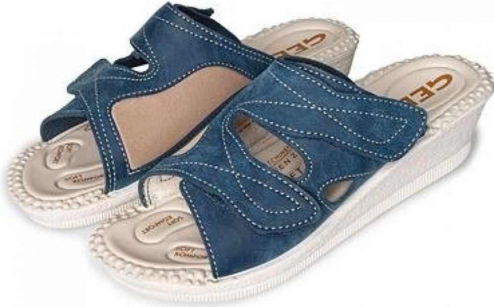 Hledáte pohodlnou letní obuv, která je především dostatečně široká pro vbočený palec? Nazouváky Milada mají kromě pružného materiálu na boku pro hallux navíc také měkkou gelovou stélku, která tlumí každý došlap chodidla. Jsou proto skvělou volbou jako letní vycházková obuv, ale i jako přezuvky na doma nebo do práce, a to i díky protiskluzové podrážce. Svršek obuvi je vyroben z kvalitní syntetické kůže, která je prodyšná, jemná a zároveň pevná. Boty jsou díky tomuto materiálu velmi lehké, takže nejsou na noze témeř cítit. Speciální rozmístění gelových bodů utlumí každý váš krok, což příznivě působí na kolenní klouby, kyčle i páteř. Jednoduché nastavení šířky pomocí pásků na suchý zip zaručí dokonalé přizpůsobení obuvi k šířce nohy či výšce nártu. Materiál: Svršek – Syntetická kůže Stélka – Gelová Podrážka – Polyuretan Výška podpatku: 4 cm Tento produkt je vyroben na Slovensku.