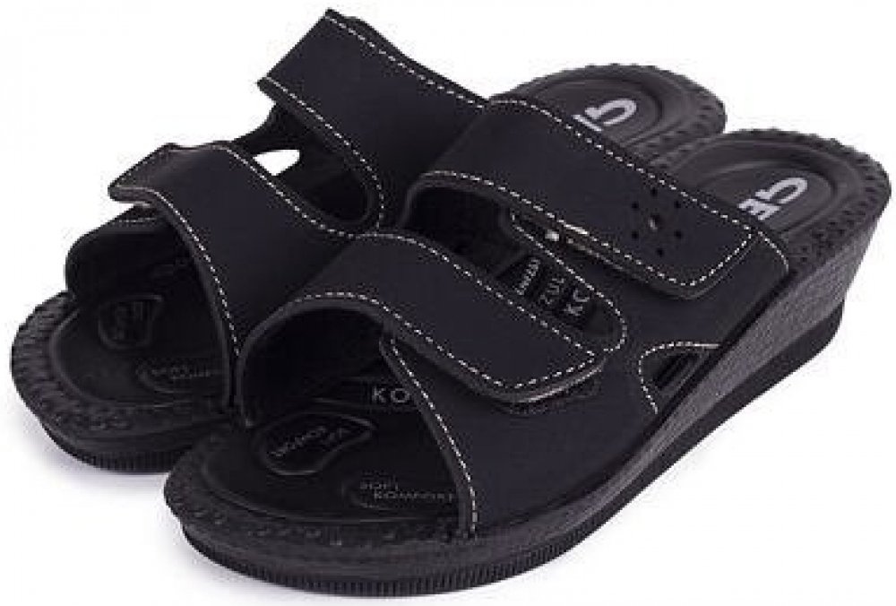 Gelová stélka tlumí došlap a šetří klouby i páteř Nastavitelná šířka díky suchým zipům – ideální i při otocích Lehká, prodyšná a pohodlná obuv na každý den Protiskluzová podrážka pro bezpečný krok Dámské nazouváky Milena jsou lehká a pohodlná obuv pro každodenní nošení doma i venku. Gelová stélka s tlumicími body chrání klouby, klínek pod patou brání otokům a nastavitelné pásky zajistí perfektní přizpůsobení noze. Svršek z kvalitní syntetické kůže je pevný, ale zároveň jemný a prodyšný. Výška podpatku: 4 cm Materiál: Svršek - 100 % syntetická kůže Stélka - gelová Podrážka- 100 % polyuretan