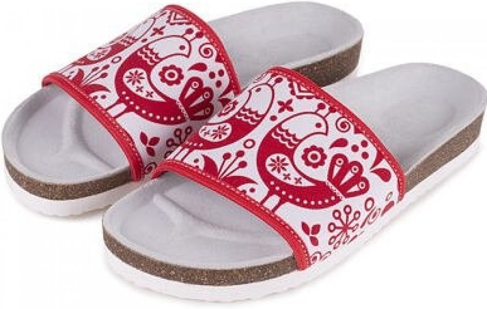 Stylové korkové nazouváky s pestrobarevným folklorním vzorem, který je vyroben z bavlny a podšitý pravou hovězí kůží. Nazouváky jsou vhodné na doma, do kanceláře, ale klidně i ven, když je sucho. Stélka přezuvek je z přírodního korku potáhnutá hovězí kůží a anatomicky tvarovaná pro podporu příčné a podelné klenby, ale také pro podporu správného držení páteře. Podešev je velmi odolná a protiskluzová a tak se tyto přezuvky stávají nepostradatelným společníkem pro každý den, kdy každým krokem přispíváte ke svému zdraví.
