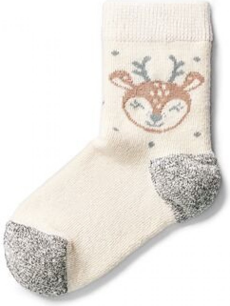Teplé ponožky jsou základem šatníku v každém věku. Proč tedy nepřidat k zimnímu outfitu veselé ponožky s roztomilým sobem? Rozveselíte tak sebe i každého, kdo si vašich ponožek během dne všimne. Horní lem ponožek je dostatečně široký, aby nohu nestahoval a ponožky byly pohodlné i na celodenní nošení. Ovčí vlna umí dobře regulovat teplotu a odvádět vlhkost od pokožky. Ponožky jsou vyrobeny z ovčí vlny Merino s přídavkem dalších vláken, které zabraňují žmolkování a zvyšují odolnost a životnost ponožek. Materiál: 47 % ovčí vlna Merino, 25 % polypropylen, 10 % polyester, 10 % bavlna, 5 % viskóza, 3 % elastan