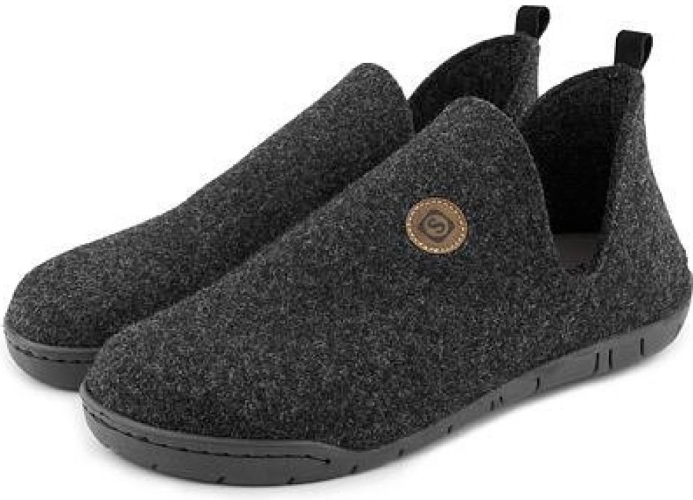 Pevné, přesto však velmi pohodlné bačkory z odolného filcu můžete nosit po celý rok. V létě naboso, v zimě s teplými ponožkami. Díky široké špičce a prostoru pro volný pohyb prstů jsou tyto bačkory pohodlné i na celodenní nošení, sedm dní v týdnu. Filc je velmi lehký materiál, který nohu zbytečně nezatěžuje. Pevná, pružná podrážka ochrání od studené podlahy, zároveň ale noze nechává volnost a flexibilitu. Vnitřní textilní stélka je vyjímatelná. Výřezy ve svršku kolem kotníků dodávají botám vzdušnost a také zajímavý vzhled. Materiál: filc, guma