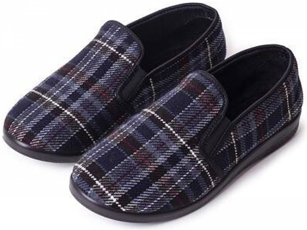 Pánské protiskluzové bačkory v univerzální tmavě modré kárované barvě jsou stabilní, pohodlnou a prostornou obuví na celoroční využití. Jejich velkou výhodou je, že díky kvalitní podrážce se považují za bezpečnou obuv i pro starší osoby. Pevná protiskluzová podrážka Vám umožní bezproblémově vycházet před dům i v zimním období bez obav z uklouznutí. Díky prodyšnému filcu v povrchové části efektivně větrají a tím pádem je možné boty nosit i celoročně. Celkový tvar a struktura bačkor je navržena dle moderních technologií pro osoby se širšími nohami a také pro ty, kteří trpí otoky chodidel nebo problémy s haluxy. Gumičky po bocích zajistí pohodlí také pro lidi s vyšším nártem. Boty se díky jejich šířce lehce nazouvají. Materiál: Podrážka: Polyuretan Svršek: Prodyšný filc Tento produkt je vyroben na Slovensku.