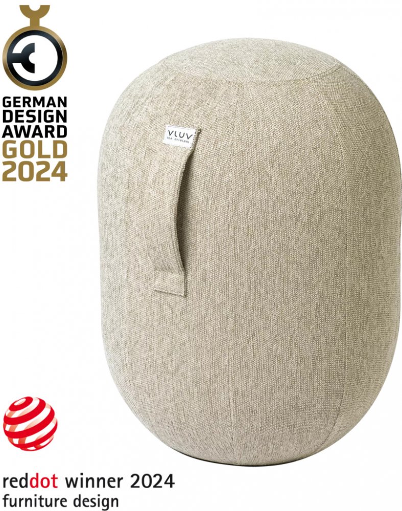 balanční stolička • nosnost: 150 kg • velikost L (pro výšku postavy 180 až 200 cm) • výška sezení: 48 až 53 cm • nastavitelná výška podle nafouknutí • šířka sedáku: 43 cm • hloubka sedáku: 43 cm • materiál: látka • odnímatelný potah se zipem YKK • madlo • stabilizační závaží pro vzpřímenou polohu • ocenění: RedDot Design Award 2024 a German Design Award Gold 2024