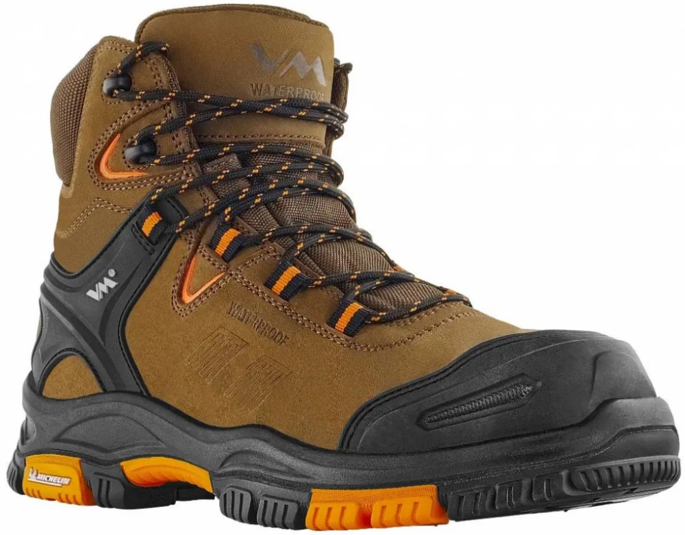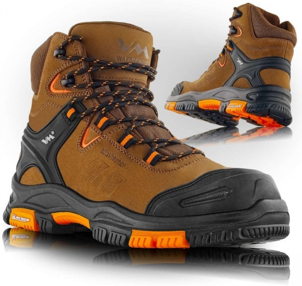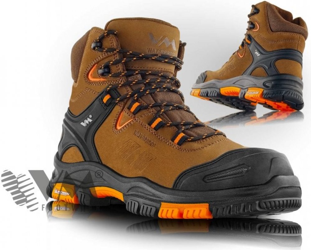 VM Footwear unisex celoroční univerzální mokasíny kotníková na tkaničky S3 SRC hnědá nubuk kombinace materiálů kompozit standardní střih