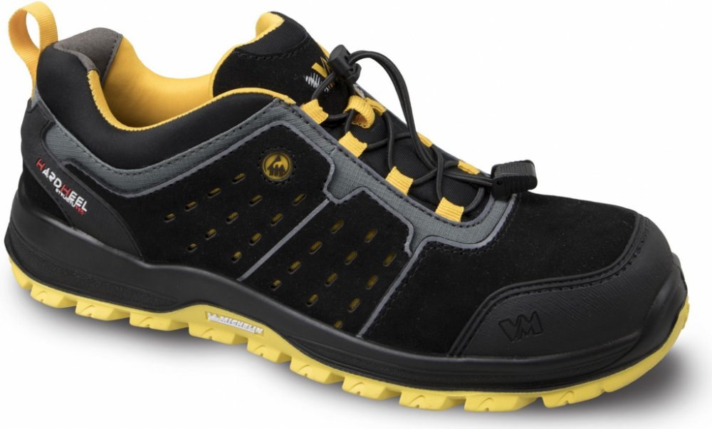 Polobotka bezpečnostní ESD - celokožená, NON METALIC. Svršek: broušená hovězinová useň VELUR v tloušťce 1,7 - 1,9 mm, podšívka: SOFT-LINNER - stretchová, prodyšná s absorpční schopností, vkládací stélka: HI-POLY - anatomicky tvarovaná z lehčené polyuretanové pěny potažená textilií MESH, antistatická, podešev: MICHELIN-PU/RUBBER - olejivzdorná, antistatická, protiskluzová. Norma ČSN EN ISO 20345:2012 | ČSN EN ISO 61340-5-1:2012 Provedení S1PL ESD SRC - s kompozitní tužinkou a kevlarovou planžetou - antistatické vlastnosti ESD, NON METALIC