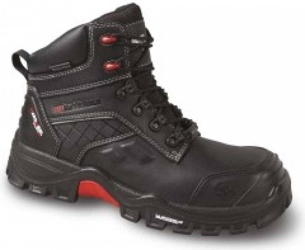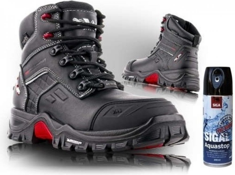 Kotníková celokožená obuv s membránou ROCKFORD S3 HRO SRC CI WR, obuv je bez jakýchkoli kovových součástí, tzv. NON METALLIC. Obuv je s kompozitní tužinkou a kevlarovou planžetou. Svršek bot je vyroben z měkčené hydrofobní hovězinové usně v tloušťce 2,0 - 2,2 mm. Podšívka boty je termoizolační paropropustná membrána FREE-TEX. Tato membrána je jako sandwich 3 speciálních paropropustných vrstev a jedné voděodolné vrsty, spolu s mezipodšívkou a svrškem obuvi tvoří dokonalé řešení optimálního klima uvnitř obuvi. Zajišťuje tepelnou izolaci, paropropustnost a voděodolnost. Podšívkový materiál má násakovou schopnost, je paropropustný a oděruvzdorný, splňuje tak veškeré hygienické normy. Stélka bot je anatomicky tvarovaná, z lehčené polyuretanové pěny s vysokou absorbční schopností, stélka je antistatická. Podešev MICHELIN je z vyrobena z polyuretanu a pryže, je olejivzdorná, antistatická a protiskluzová. Podešev je v jedinečném provedení pro všechny povětrnostní podmínky a každé prostředí. Podešve jsou vybaveny kombinací speciálně upravených pryžových směsí a jsou inspirované jedinečným technickým designem světově známých pneumatik značky Michelin®. Obuv má moderní řešení patní části, které zabezpečuje maximální stabilizaci nohy při chůzi i stání. Podešev je odolná vůči kontaktnímu teplu 300°C. Materiál: měkčená hovězinová useň v tloušťce 2,0 - 2,2 mm