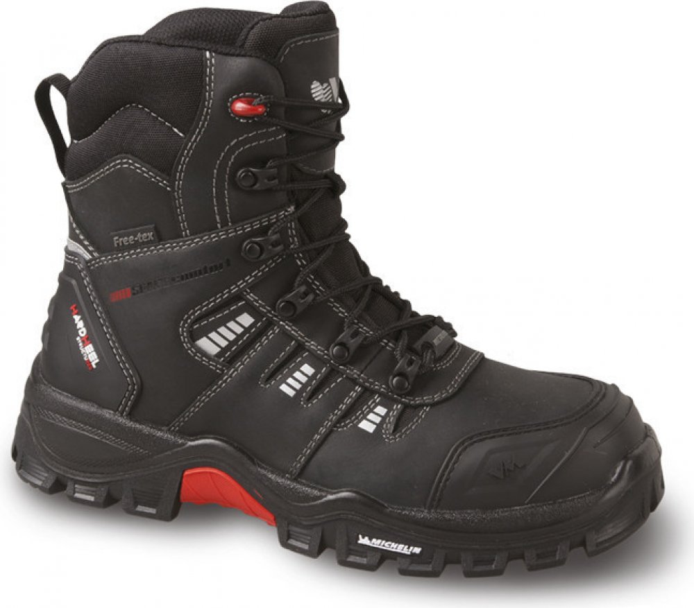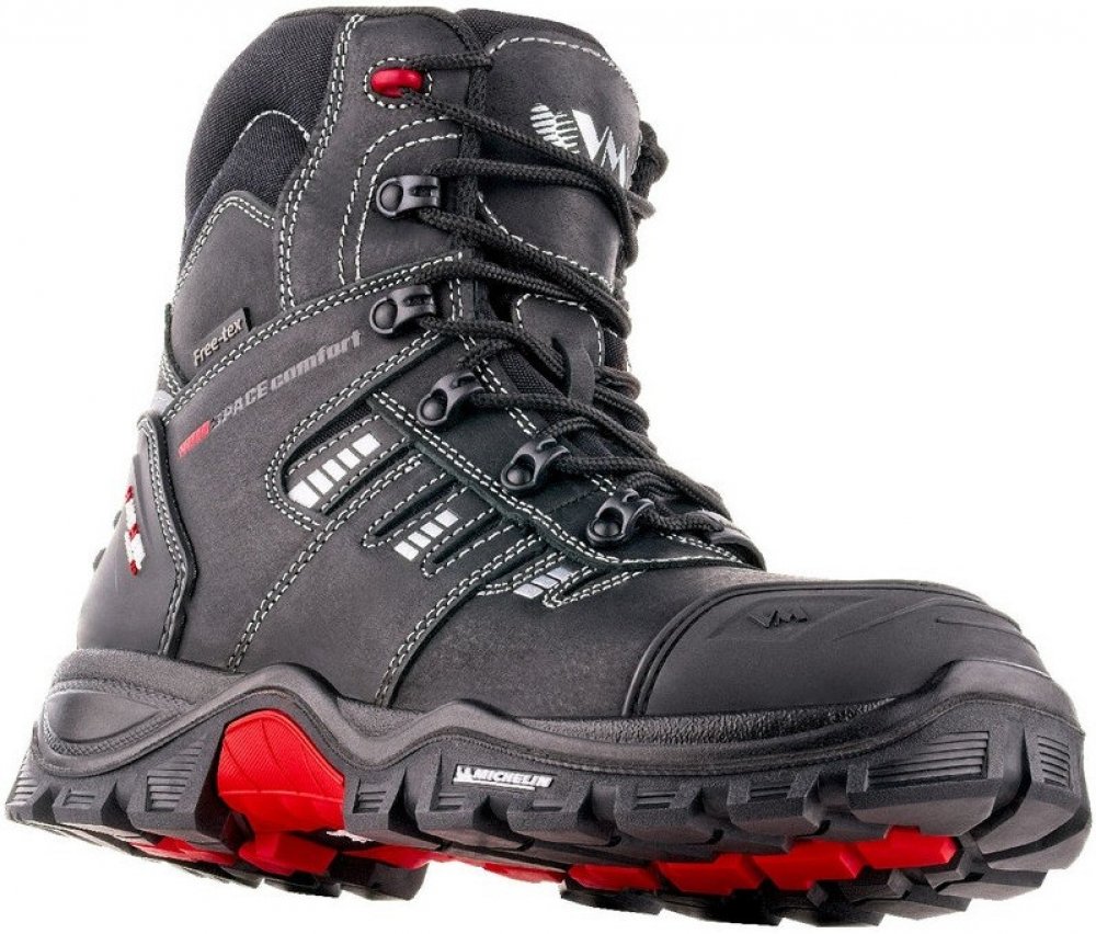 Obuv splňuje požadavky NON METALIC, je tedy vyrobena bez jakýchkoliv kovových součástí, a tedy vhodná do prostředí, která to vyžadují. Optimální šíře obuvi zaručuje požadovaný komfort při nošení. Svršek boty je vyroben z hovězí lícové usně o tloušťce 2 - 2,2 mm (CRAZY HORSE). Systém odvětrání svršku obuvi v kombinaci s podšívkou tvořenou termoizolační paropropustnou membránou FREE-TEX® zaručuje maximální komfort, zajišťuje, že obuv "dýchá". Membránu tvoří "sandwich" 3 speciálních paropropustných vrstev a jedné voděodolné vrstvy, spolu s mezipodšívkou a usňovým svrškem obuvi tvoří dokonalé řešení optimálního klima uvnitř obuvi. Zajišťuje tepelnou izolaci, paropropustnost a voděodolnost. Vkládací stélka z lehčeného polyuretanu tlumí nárazy a má vysokou absorpční schopnost energie při chůzi. Je anatomicky tvarovaná s vynikající nasákavostí a vysychavostí. Má antistatické vlastnosti a udržuje uvnitř obuvi optimální klima. Obuv má moderně řešené patní části, jenž zabezpečují maximální stabilizaci nohy při chůzi i při stání. Podešve jsou vybaveny kombinací speciálně upravených pryžových směsí a jsou inspirované jedinečným technickým designem pneumatik od světově známé značky MICHELIN®. Jsou odolné proti kontaktnímu teplu až do +300 °C, propíchnutí, palivovým olejům, chladu a v neposlední řadě jsou protiskluzové.