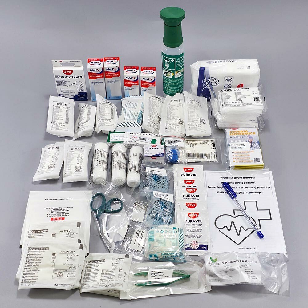 náhradní náplň do lékárničky ELEKTRO obsahuje veškerý základní sortiment zdravotnického a obvazového materiálu pro poskytnutí první pomoci, který byl sestaven na základě rizik vyskytujících se na pracovištích trafostanic, předávacích stanic, elektráren a dalších podobných provozech, jako jsou popálení, zástava dechu, poraněni očí, a další úrazy, které se mohou na těchto pracovištích vyskytnout.
