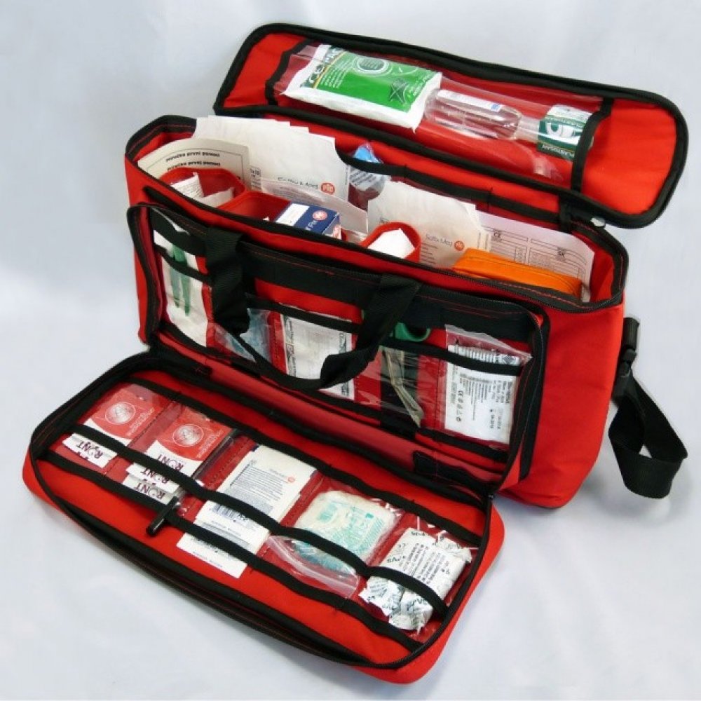 zdravotnická brašna je vybavena náplní SPORT, která obsahuje základní sortiment zdravotnického a obvazového materiálu pro poskytnutí první předlékařské pomoci, jenž byl sestaven na základě rizik vyskytujících se na sportovištích a ve sportovních klubech