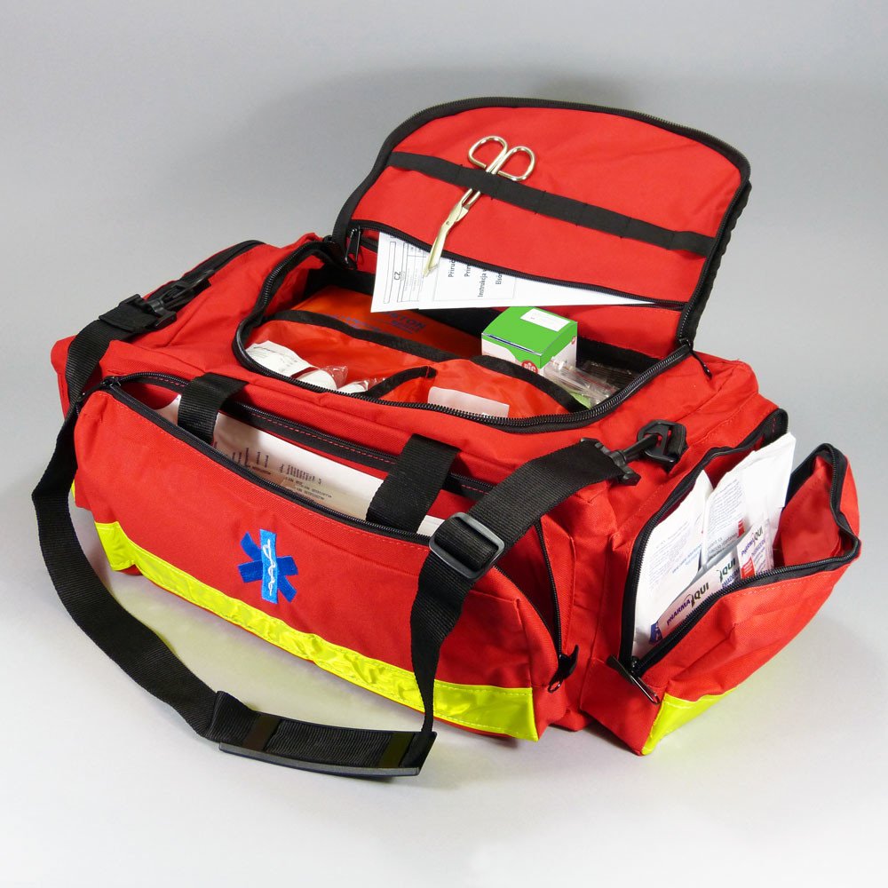klasická zdravotnická brašna je vyrobena z vodoodpudivého nylonového materiálu hlavní prostor brašny je rozdělena na 3 oddíly na bočních stranách brašny jsou dvě kapsy a na čelní straně jedná velká kapsa pro uložení zdravotnických pomůcek a materiálu na vnější straně víka je všitá průhledná kapsa pro umístění seznamu zdravotnického materiálu nebo identifikační karty ve vnitřní straně víka je kaps...